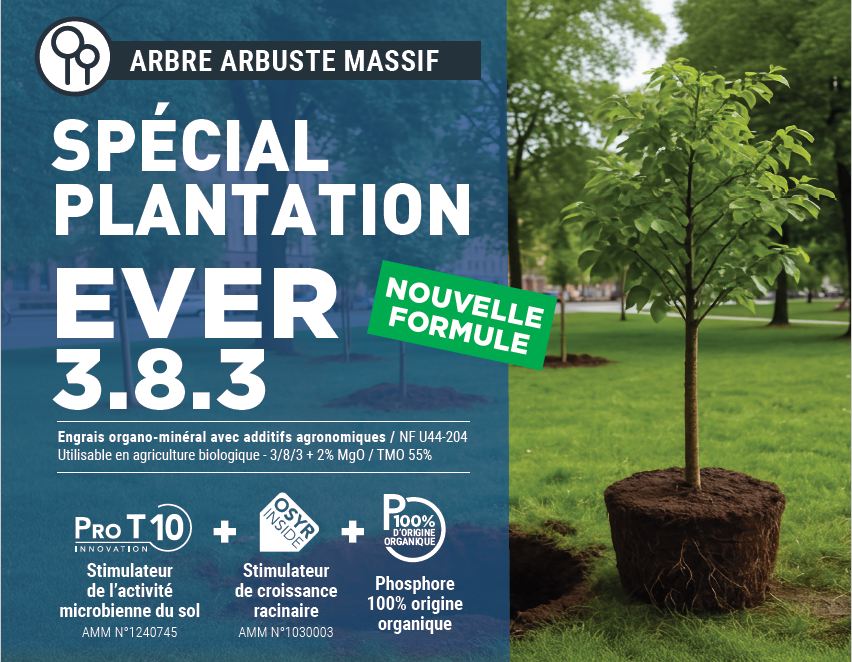 Dans ce contexte, Frayssinet fait évoluer sa formulation EVER 3, un organo-minéral utilisable en agriculture biologique, conçu pour accompagner les projets de plantation d’arbres, d’arbustes.